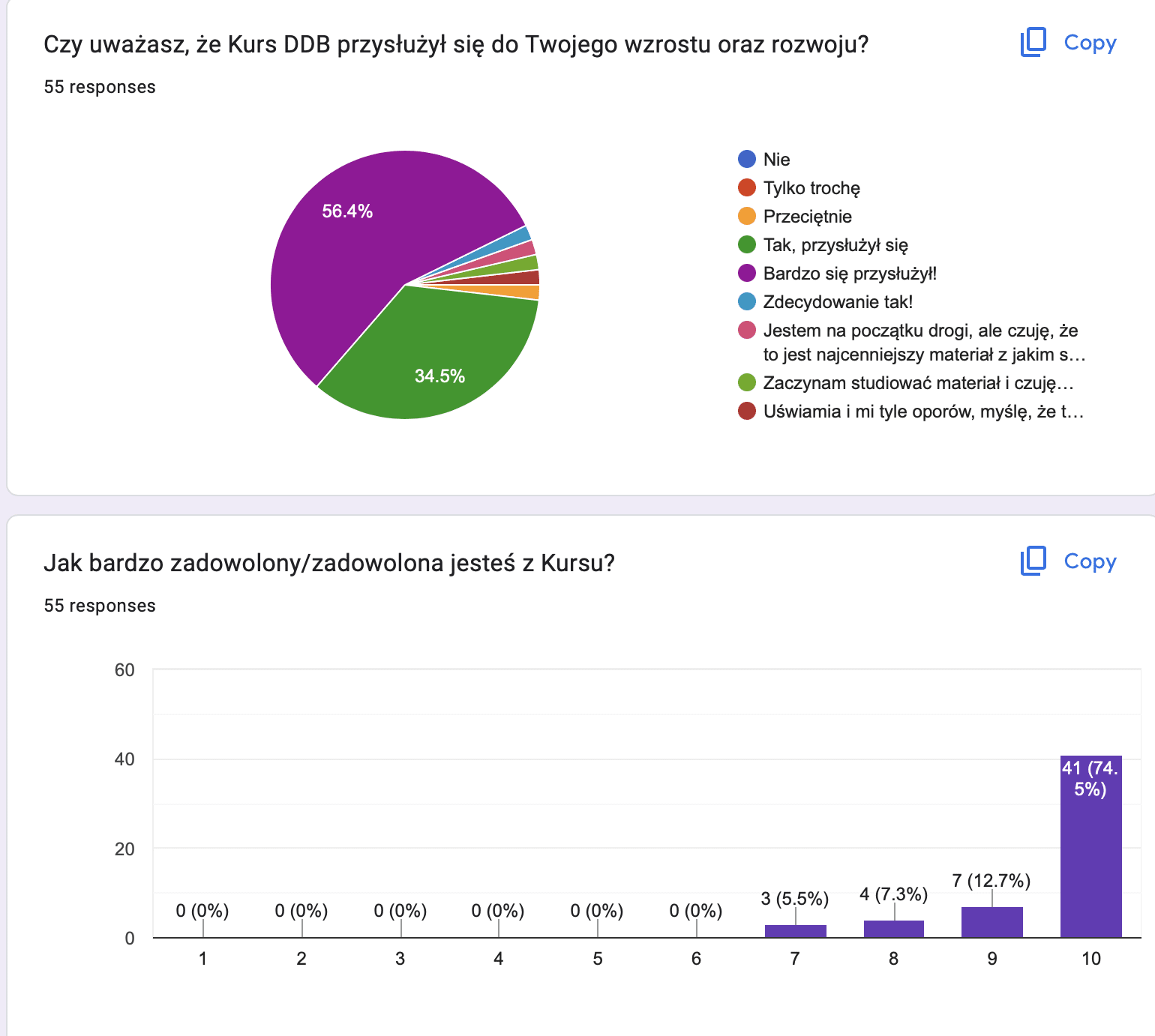 Już od wiosny 2022r pracuję z Twoimi wykładami.Moje życie zmieniło się i nadal zmienia na dużo spokojniejsze i lepsze. Przesłuchałam wszystkie Twoje filmy i Duch mój podpowiedział ,żeby wykupić Kurs DDB 12 m-cy. Kurs DDB jest dla mnie wspaniałym prowadzeniem. Przekazy są bardzo proste i zrozumiałe, czuję w nich bliskość Boga. (...) DDB pozwala mi pozbierać i przemienić moje życie. DDB daje mi nadzieję ,wiarę i moc w Siebie.
